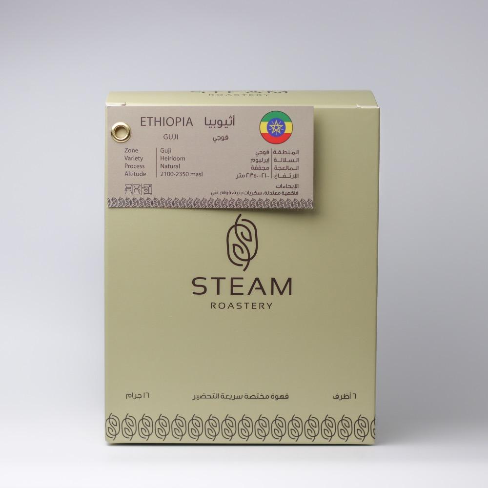 يحتوي البوكس على 6 أظرف فردية، كل ظرف بوزن 16 جرام من قهوة قوجي الإثيوبية المجففة، المختارة بعناية لتقدم لك كوباً غنيّاً بالنكهات الزاهية والمعقدة.